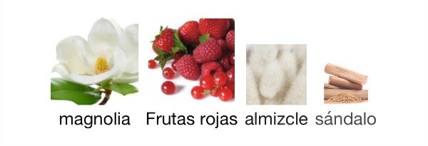Una magnolia cremosa y delicada con un toque jugoso de frutos rojos y un fondo amaderado-almizclado. Sofisticada, moderna,