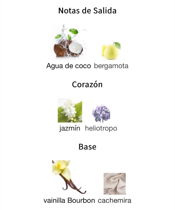 Una mezcla floral, dulce y cálida con un toque tropical.