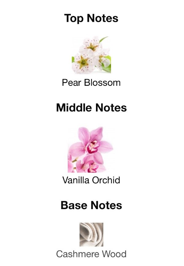 Notas flor de peral, orquídea vainilla, madera de cachemira